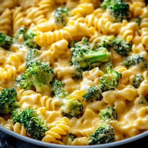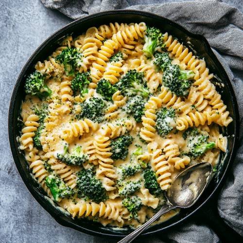 Keep the heat on low and stir gently for about 5 more minutes. The broccoli should become tender but still bright green, and the cheese should fully melt. The sauce will become rich and creamy, thick enough to cling to the pasta without being dry. If it looks too thick, add a splash of water or cream to loosen it up just a bit. Stir until the texture is just right and everything is well combined.