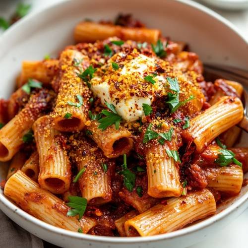 This Chili Crunch Pasta is one of those dishes that will keep you coming back for more. With its bold flavors, creamy mozzarella, and satisfying pasta, it’s the perfect recipe for a cozy night in. Whether you’re cooking for a crowd or just treating yourself, this dish is sure to be a winner. Grab your ingredients, heat up that oven, and enjoy every bite!