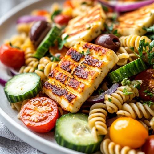 • Serve & Enjoy  Enjoy your cheesy, tangy, and oh-so-delicious Halloumi Pasta Salad! It’s perfect for a light lunch or a BBQ side dish.