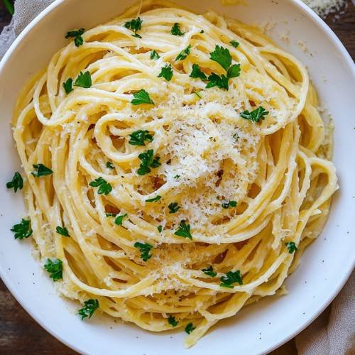 At this point, the magic happens. Pour in the reserved pasta water a little at a time, stirring and tossing the pasta as you go. The pasta water helps create a silky, smooth sauce that clings to the noodles perfectly. If you want a creamier texture, feel free to add more pasta water until you achieve your desired consistency. Taste the pasta and adjust the seasoning by adding more lemon, pepper, or parmesan if needed. This is the moment to make sure the flavor is just right!