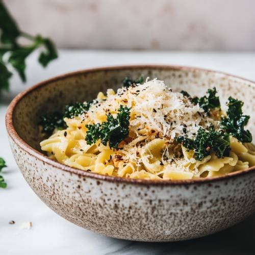 To make the dish extra special, it’s time for the toppings. Once the miso and butter have been stirred in, spoon the creamy pastina into bowls and top it off with a generous sprinkle of fried garlic for that irresistible crunch and garlicky punch. Add sliced scallions for a fresh, zesty pop that contrasts the creamy pasta. Finally, don’t forget the squeeze of fresh lemon juice. The lemon adds a bright, tangy contrast to the richness of the dish, elevating the flavors and balancing out the savory elements.