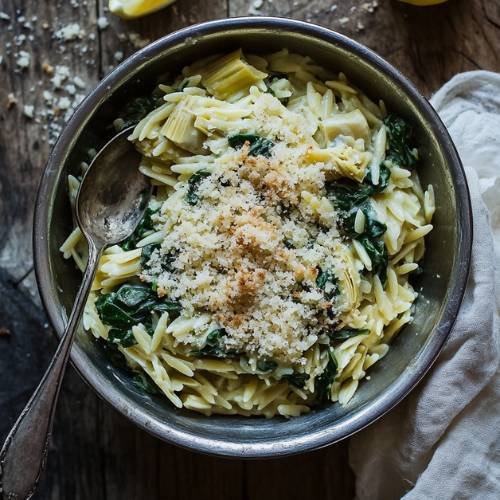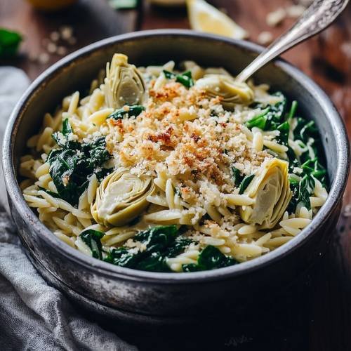 One Pot Spinach And Artichoke Orzo