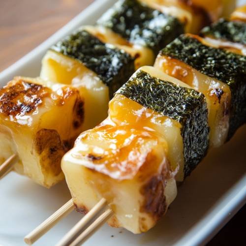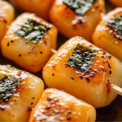 - Glaze the Mochi Place the fried mochi onto bamboo skewers. In the same pan, add the sauce and let it simmer. Baste the mochi pieces with the sauce, flipping them until they are beautifully glazed and browned.