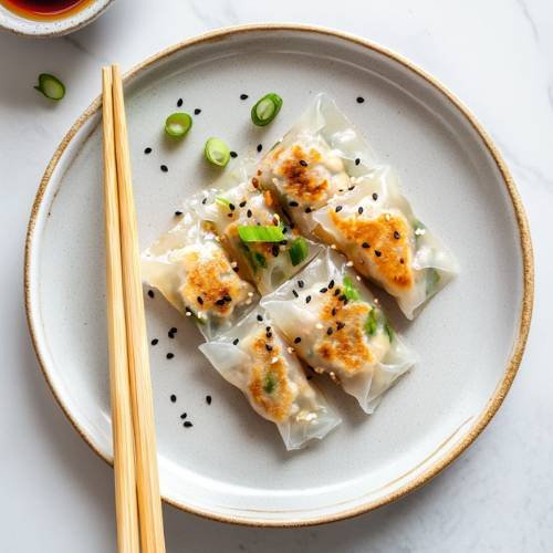 Once your dumplings are assembled, heat some oil in the pan again over medium heat. Carefully place the dumplings into the pan, making sure not to overcrowd them. Fry the dumplings for about 2-3 minutes per side, or until the rice paper turns crispy and golden brown. Flip them carefully to ensure both sides are equally crispy and delicious.