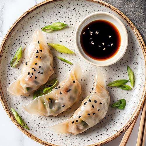 Serve these crispy rice paper dumplings with the delicious dipping sauce made from soy sauce, black vinegar, minced garlic, chili oil, sesame seeds, and fresh red chili. You can also pair them with a side of steamed rice or a fresh salad to balance the meal.