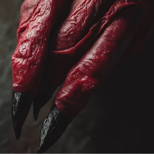 • Add the nail  Take an almond and gently press it into the tip of each finger. Paint some black food coloring on the almond to mimic the cursed nail. You can also paint around the “finger” to make it look extra cursed.