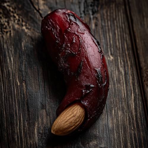 Once your finger shapes are ready, it’s time to add the cursed “nail.” Take an almond and gently press it into the tip of each finger, ensuring that it stays securely in place. To make the nail look more like Sukuna’s cursed finger, paint the almond with black food coloring. You can also apply a small amount of black food coloring around the tip of the finger to enhance the effect and make it look even more sinister. This step really brings the finger to life with a creepy and authentic look.