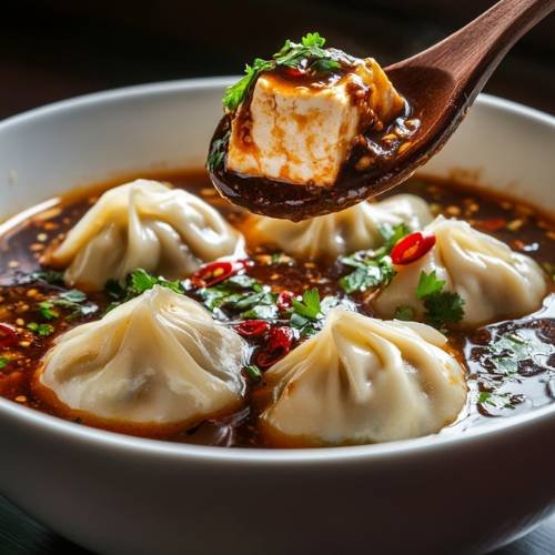 Soup dumplings in mapo tofu-style sauce bring together the rich, spicy flavors of Sichuan cuisine with the comfort of juicy, tender dumplings. This dish is the perfect way to spice up your dinner routine and impress your friends or family. Whether you’re a fan of bold flavors or just love a good dumpling, this recipe will become a favorite in no time. Enjoy!