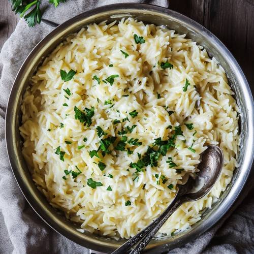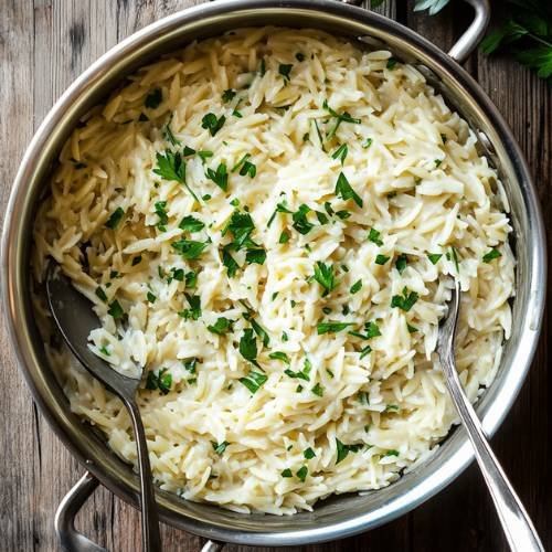 - Simmer it all – Pour in the vegetable broth, garlic powder, onion powder, and black pepper. Lower the heat to a gentle simmer and cook, stirring now and then, until the orzo is tender and most of the broth is absorbed (about 10–12 minutes).