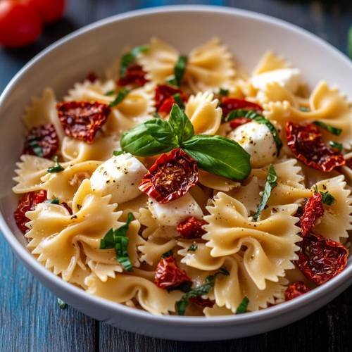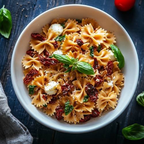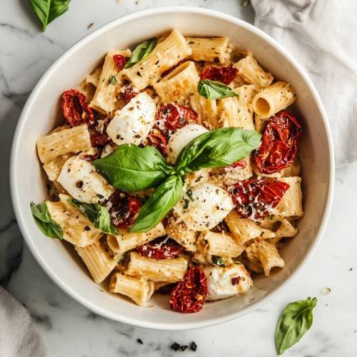 Let me tell you this pasta salad is one of those recipes that looks fancy but is secretly super simple. It’s packed with flavor from juicy cherry tomatoes, creamy mozzarella balls, and the bold taste of sun dried tomatoes. The best part? You can eat it cold or at room temperature. I like both, but I’d love to know what you prefer.
