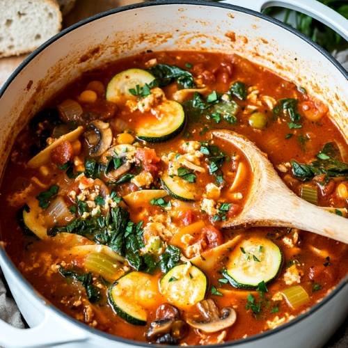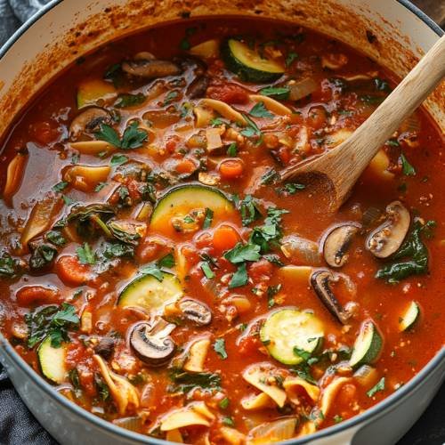 Everyone was making lasagna soup, and I started feeling a little left out. So, I made my own cozy version of vegetable lasagna soup! It’s warm, hearty, and packed with veggies. It tastes just like lasagna, but without all the layering and baking. Plus, it’s got a fun twist with plant-based sausage and a spoonful of creamy ricotta on top. Honestly? I’m obsessed.