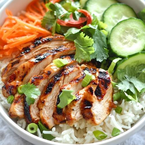 This Vietnamese Lemongrass Chicken Rice Bowl is a flavorful, easy-to-make dish that combines savory chicken with fresh ingredients. It’s perfect for any night of the week, and the best part is that it’s a crowd-pleaser your family and friends will definitely ask for more! Whether you cook it in a pan, air fryer, or on the grill, it’ll always turn out delicious and fragrant. So go ahead, try it out, and enjoy the aromatic goodness of this vibrant dish!