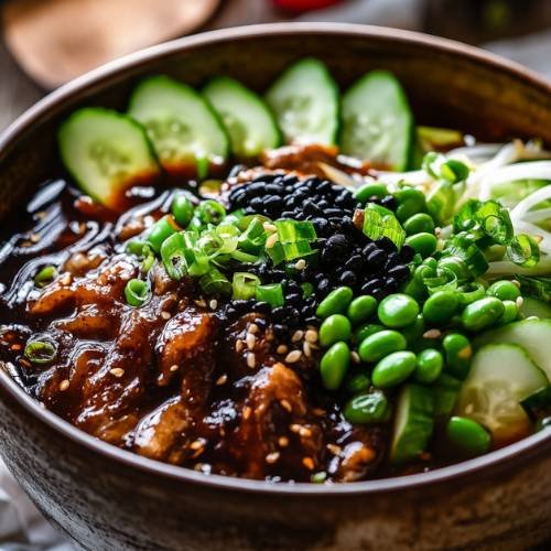 Now, it’s time for the fun part serving! Spoon a generous amount of the savory, flavorful pork mixture over a bowl of boiled noodles. I recommend using wheat noodles for the best texture, but feel free to use any kind you prefer. Top the noodles with your choice of sliced veggies, such as cucumber, carrots, or bean sprouts. Give everything a good mix, and your Zhajiangmian is ready to eat!